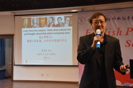 2017年4月11日,香港中文大学(深圳)研究生院院长、中国科学院院士、材料表面科学与技术专家唐叔贤教授莅临我校,在阶梯教室为我校高二理科420余名学生带来一场题为《向大师学习